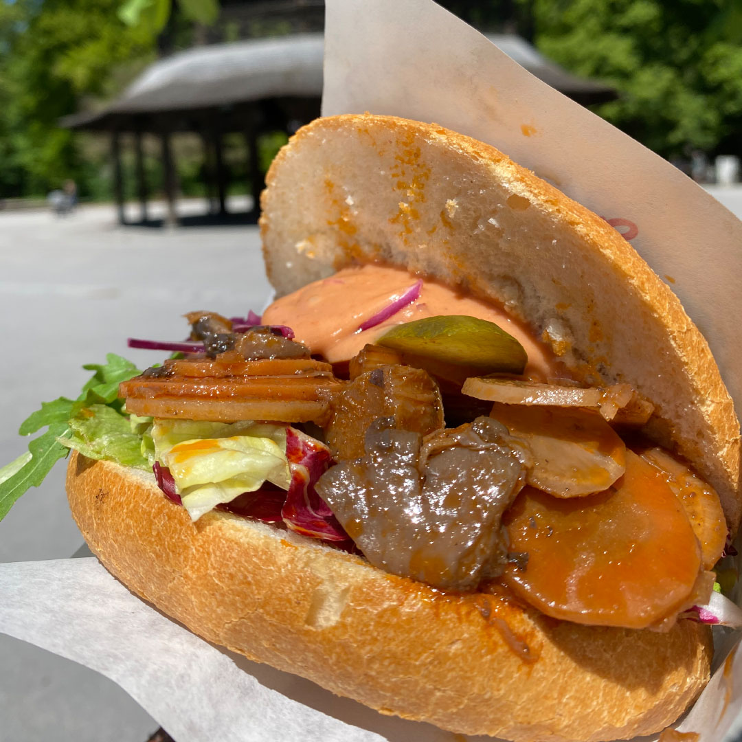 The restaurant serves Bavarian-international cuisine, including a playground with an old-school carousel and the city’s loveliest park surrounding it.